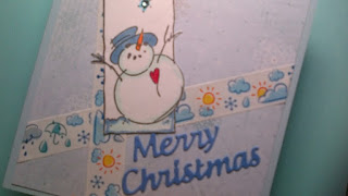 The stamp I used is Autumn Brook from Stampscapes I stamped with memento tuxedo black and coloured with copics, I layered it on some wood grained paper out of a Christmas pack I added some die cut trees and a deer. As you can see in keeping with the theme I took my card to the break wall at Turkey Point to take the pictures.